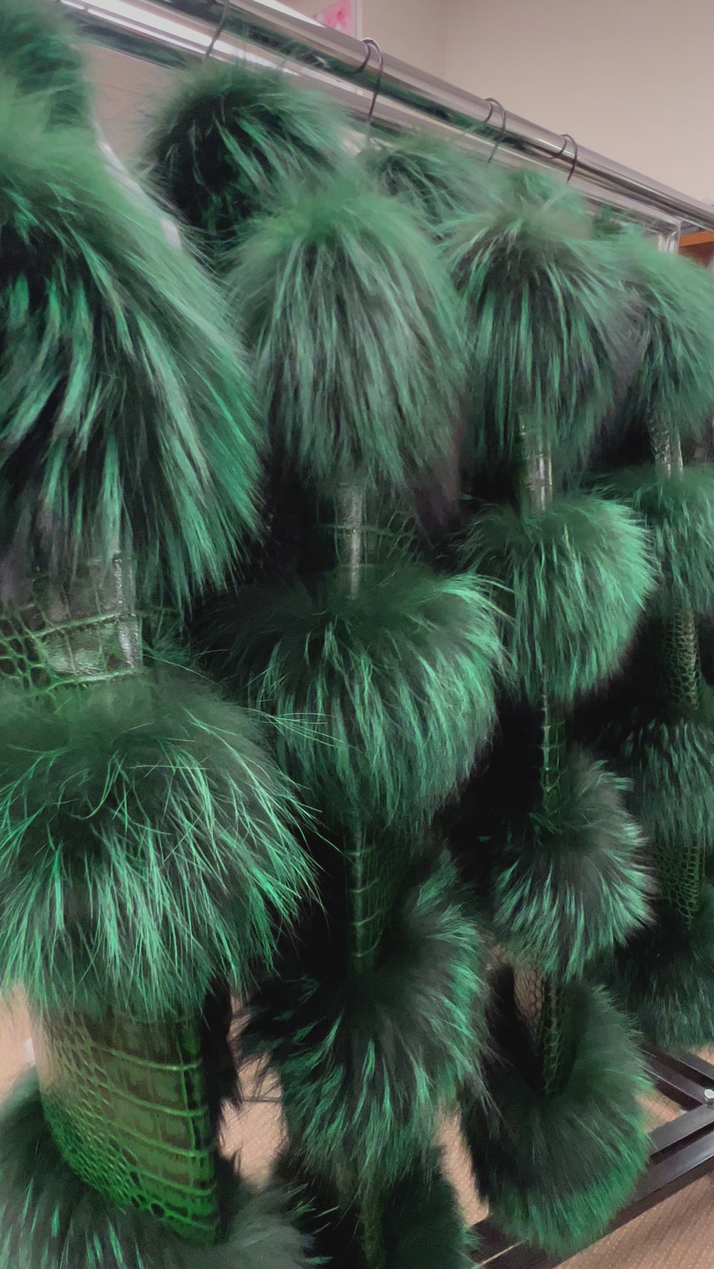Introducing our stunning Green Fur Fox Motto Jacket, a luxurious blend of style and warmth. Crafted with exquisite green fox fur and embossed leather, this jacket boasts a captivatingly beautiful texture and rich color that exudes elegance.
