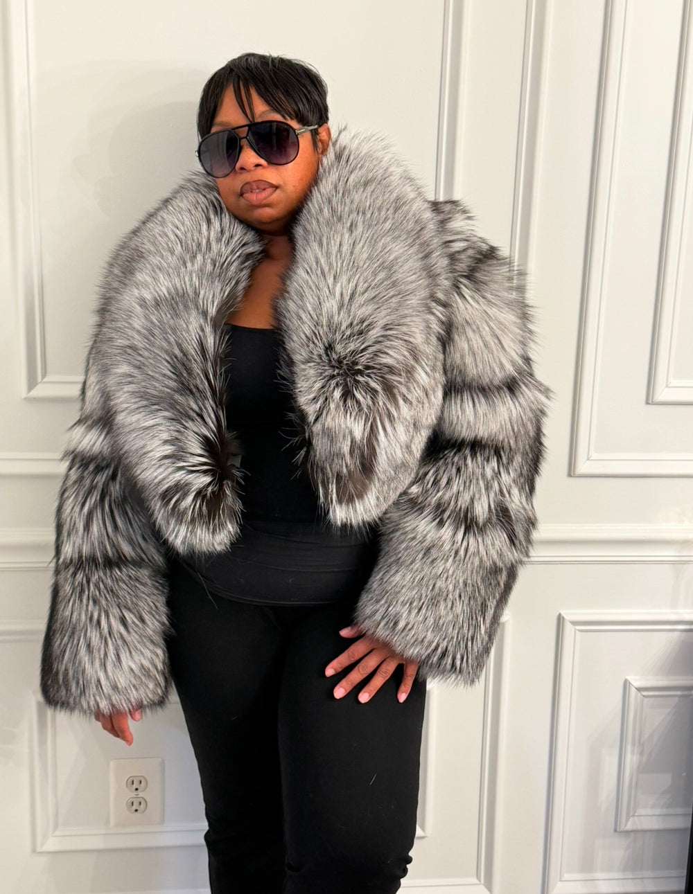 The “Janell” Black Fox Crop Jacket